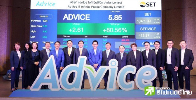 โดยราคาหุ้น ADVICE เปิดซื้อขายที่ระดับ 5.65 บาท/หุ้น จากราคาจอง 3.24 บาท/หุ้น คิดเป็นการเพิ่มขึ้น 2.41 บาท/หุ้น หรือ 74.38%